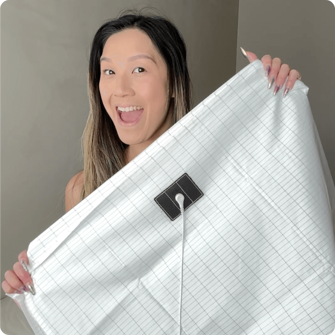 "Initially very skeptical about grounding, I decided to try a grounding sheet after years of poor sleep and morning aches. Surprisingly, after just one night, I felt less sore and more refreshed. Now, after a few weeks, my sleep has significantly improved. I highly recommend grounding sheets to others."