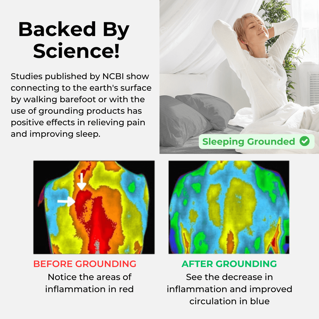 Our grounding bedsheet is made from a highly conductive material. When plugged into a grounded wall outlet, it allows your body to maintain a connection with the Earth's energy, offering many health benefits.