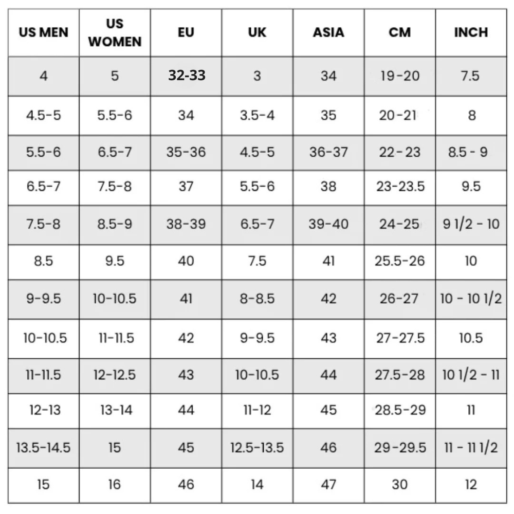 Note: Make sure to measure both feet and use the larger measurement for the best fit.